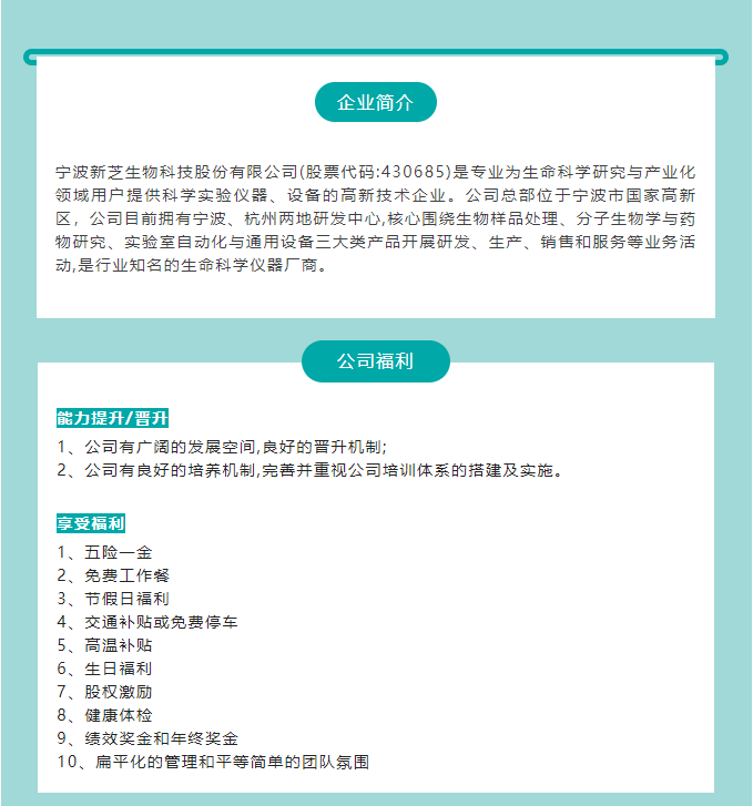 寧波新芝生物科技股份有限公司(股票代碼:430685),總部位于寧波市國家高新區,是知名的生物樣品處理設備提供商,也是國內超聲波技術應用探索的先行者。新芝生物是一家為生物醫藥、醫療衛生、IVD、生物安全、食品安全、疾病預防與控制、檢驗檢疫、環境保護及新材料研究等諸多領域提供相關科學儀器的高新技術企業。