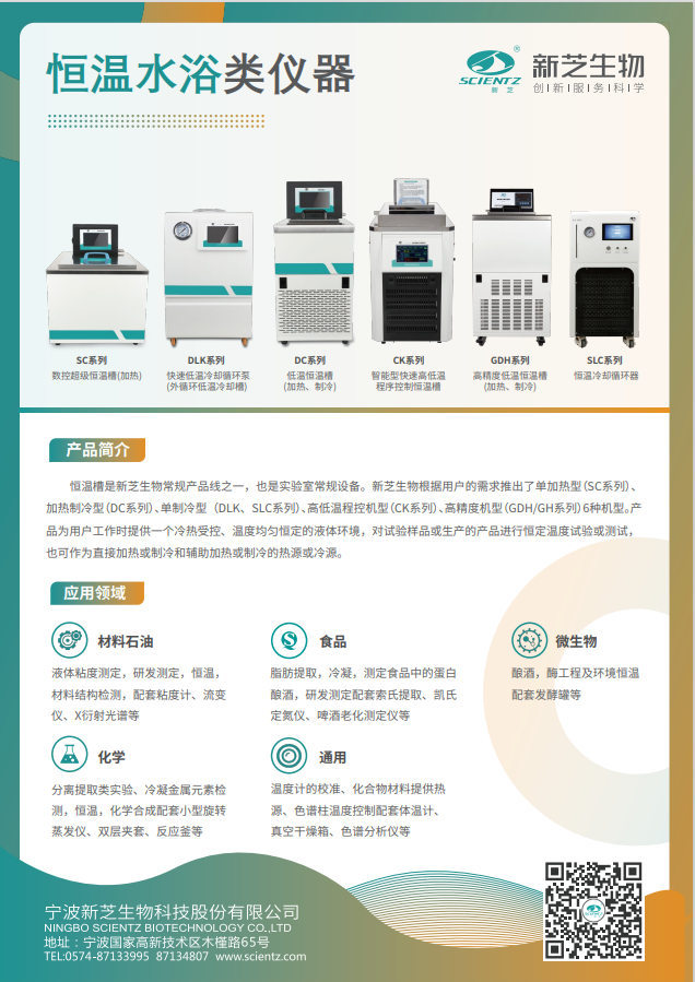 企業(yè)公眾號(hào)新芝生物專業(yè)研發(fā)生產(chǎn)超聲波細(xì)胞粉碎機(jī)、超聲波清洗機(jī)和超聲波細(xì)胞破碎儀等各種科研實(shí)驗(yàn)儀器與工業(yè)化生產(chǎn)設(shè)備