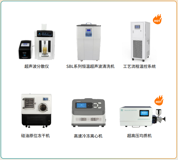 新芝生物可提供“微球制備-微球分散-產(chǎn)品干燥”的全方位配套設(shè)備。以超聲分散、冷凍干燥為核心競(jìng)爭(zhēng)力,實(shí)現(xiàn)納米微球高效、可控制備及均勻分散等要求。同時(shí),新芝生物具備相關(guān)配套清洗、恒溫等儀器,可配套服務(wù)實(shí)驗(yàn)室相關(guān)清洗和溫控需要,用于配套服務(wù)相關(guān)分析儀器的樣品制備及溫度控制。