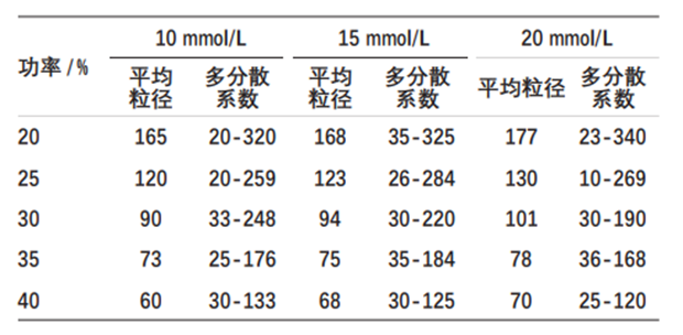 附表超聲輸入功率對脂質體粒徑及粒徑分布影響