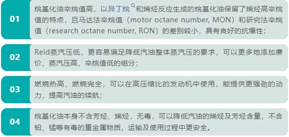 相比上述汽油添加劑,烷基化油具有下列明顯的優勢: