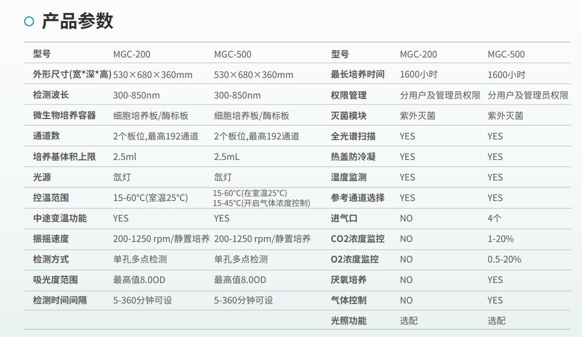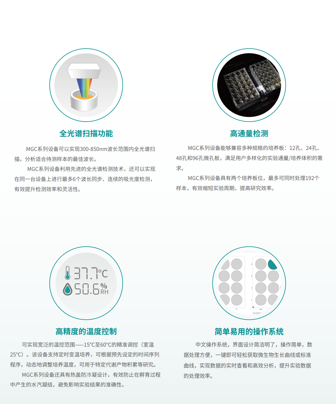 MGC-500微生物生長曲線分析儀可以實現(xiàn)不同培養(yǎng)溫度、氣體環(huán)境、振搖狀態(tài)和光照組合下的微生物生長狀態(tài)實時檢測,而且整個過程無需人工頻繁取樣,也無需人員值守,大大降低了污染風(fēng)險,真正實現(xiàn)了人力的解放和研究效率的提升。