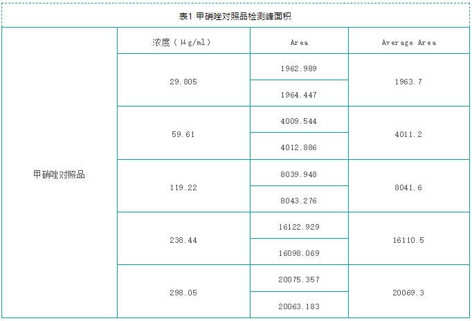 甲硝唑對照品標準曲線