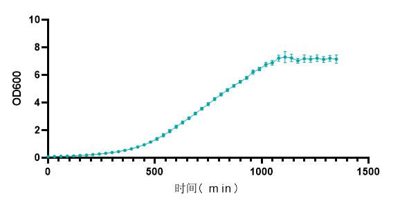 大腸桿菌是實驗室最常見的微生物之一,屬于革蘭氏陰性短桿菌,大小0.5×1~3微米,周生鞭毛,能運動,無芽孢。其在MGC-200中培養的生長曲線如下圖。