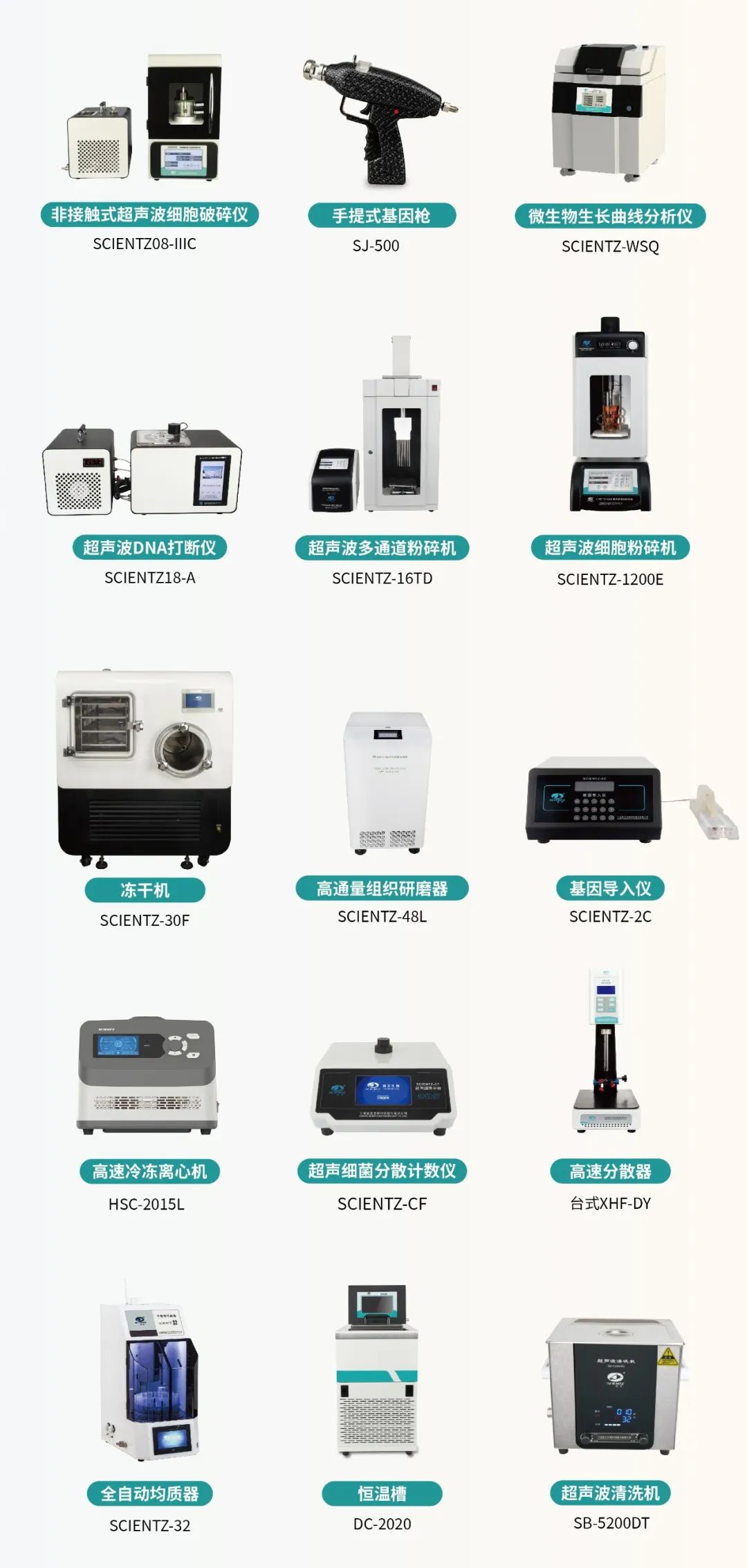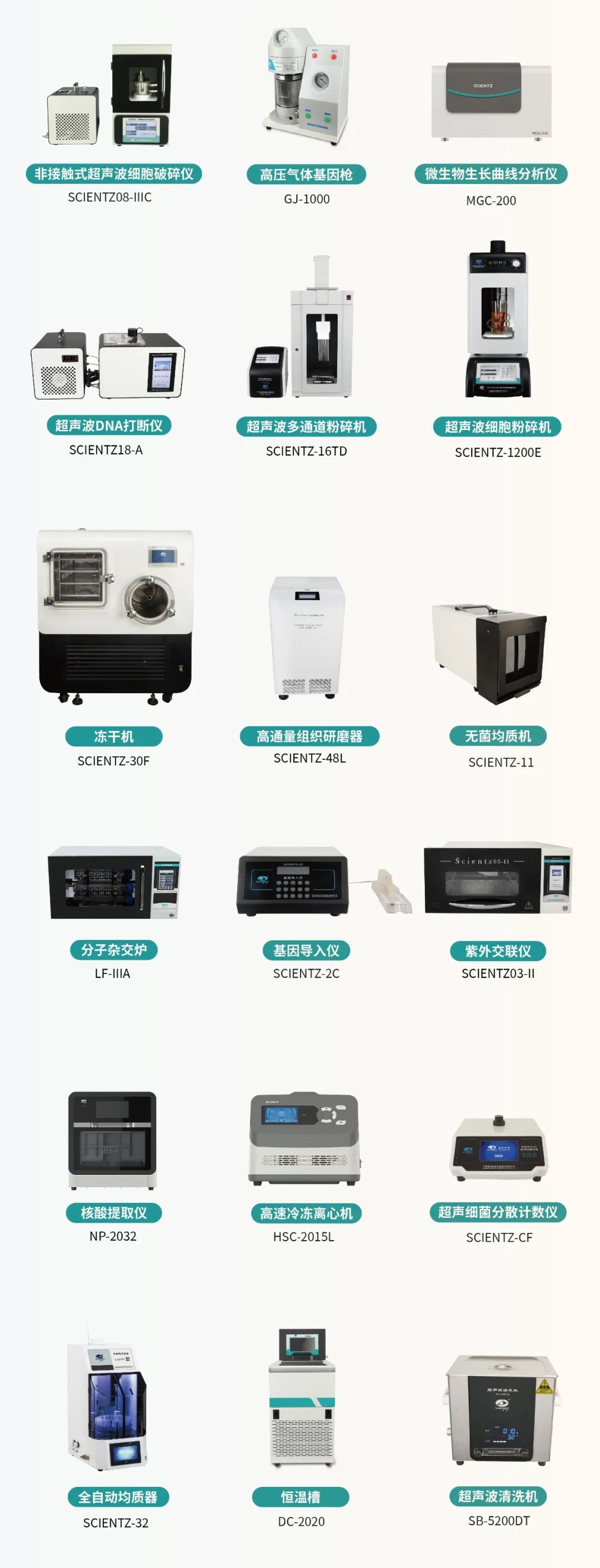 企業公眾號新芝生物專業研發生產超聲波細胞粉碎機、超聲波清洗機和超聲波細胞破碎儀等各種科研實驗儀器與工業化生產設備