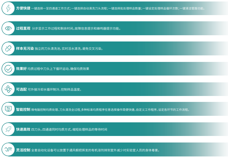 | 均質(zhì)電機(jī) | 功率300W、最高轉(zhuǎn)速36000r/min | 均質(zhì)刀具規(guī)格 | 10×195mm或19×195mm |