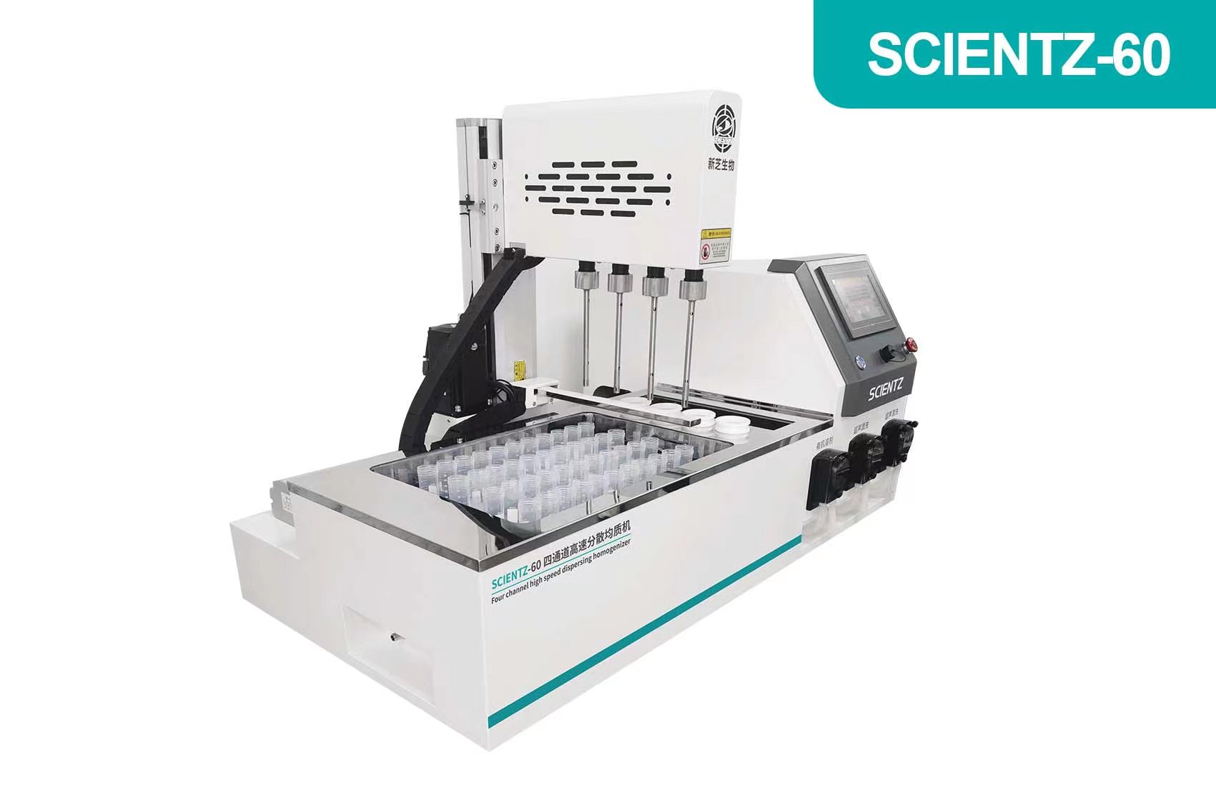 隨著食品安全和生物醫(yī)藥領(lǐng)域的發(fā)展,均質(zhì)機(jī)的使用越來(lái)越廣泛,包括農(nóng)畜產(chǎn)品、肉蛋奶、飼料中農(nóng)藥或獸藥殘留檢測(cè)等前處理領(lǐng)域。SCIENTZ-60四通道全自動(dòng)均質(zhì)機(jī)是一款可實(shí)現(xiàn)多任務(wù)的高通量均質(zhì)分散機(jī),它一次最多處理60個(gè)樣品,大大提高了樣品前處理效率。儀器具有優(yōu)異的樣品處理通量,較少的樣品殘留,較理想的樣品均質(zhì)效果和安全可靠性。
