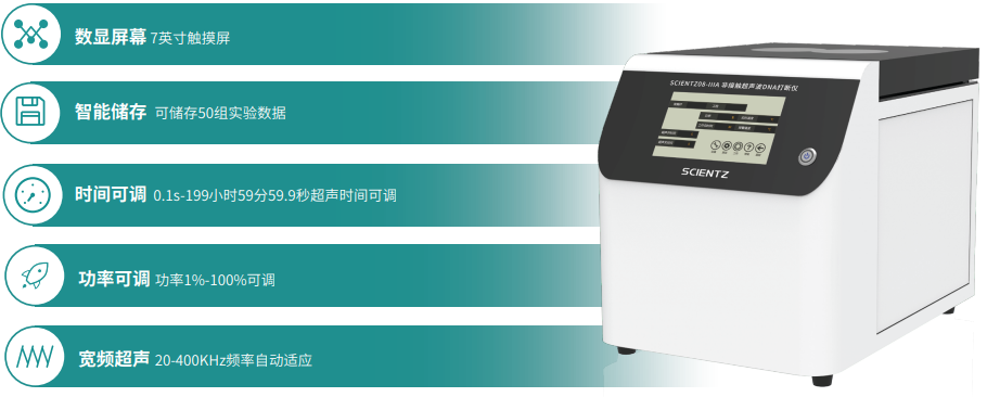 SCIENTZ08-IIIA非接觸式超聲波DNA打斷儀采用等溫、非接觸的方式對樣品進行打斷、勻漿和混合,用于無菌、可超微量破碎,隔著離心管能打斷染色體。專為二代測序DNA樣本與染色質免疫共沉淀實驗樣本前處理量身訂做,對于每天要處理多個樣品或者貴重樣品的實驗室,它具有處理高通量,樣本低損耗,無交叉污染等優勢。逐漸成為ChIP(染色質免疫共沉淀)和DNA剪切研究平臺不可缺少的標準化工具。