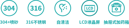 ● 內(nèi)艙艙體采用316L鏡面不銹鋼(圖標(biāo)——316不銹鋼),無縫隙、圓角處理。有效避免漏水、雜質(zhì)沉淀及 細(xì)菌的滋生引起的二次污染。