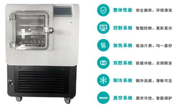 | ? 進口真空泵 | ? 自動充氮接口 | ? T型掛瓶架 | ? 共晶點測試 | ? 手機APP遠程控制 |